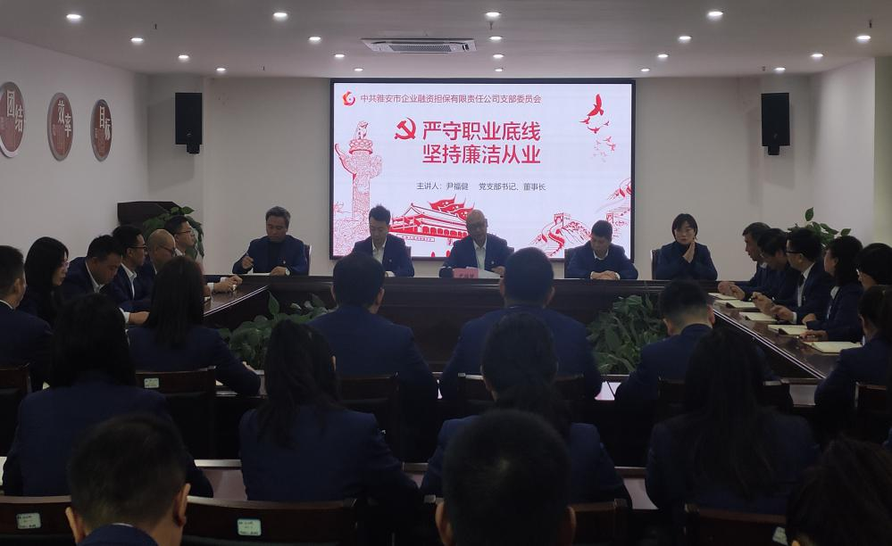 三是講黨課強(qiáng)黨性。市擔(dān)保公司黨支部書(shū)記、董事長(zhǎng)尹福健以“嚴(yán)守職業(yè)底線,堅(jiān)持廉潔從業(yè)”為題,圍繞“認(rèn)識(shí)新形勢(shì)反腐敗斗爭(zhēng)的形勢(shì)、腐敗出現(xiàn)的原因和防范措施、學(xué)習(xí)廉潔法律法規(guī),防范廉潔風(fēng)險(xiǎn)、增強(qiáng)黨員領(lǐng)導(dǎo)干部拒腐防變的能力”四個(gè)方面,結(jié)合公司實(shí)際為黨員干部上了一堂生動(dòng)的廉政黨課,警示黨員干部要增強(qiáng)“四個(gè)意識(shí)”,堅(jiān)定“四個(gè)自信”,做到“兩個(gè)維護(hù)”,強(qiáng)化黨性修養(yǎng),自覺(jué)增強(qiáng)“免疫力”。