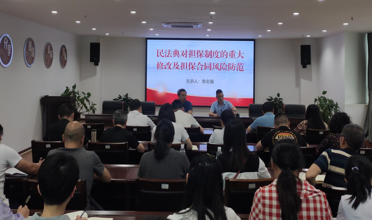 為進(jìn)一步提高風(fēng)險(xiǎn)防范能力,幫助干部職工在實(shí)際工作中理解并正確適用擔(dān)保制度的有關(guān)法律條文,強(qiáng)化干部職工法治意識(shí),按照“轉(zhuǎn)樹(shù)作抓”專(zhuān)項(xiàng)行動(dòng)方案和年度學(xué)法計(jì)劃,5月11日,市擔(dān)保公司開(kāi)展《民法典對(duì)擔(dān)保制度的重大修改及擔(dān)保合同風(fēng)險(xiǎn)防范》專(zhuān)題知識(shí)講座。