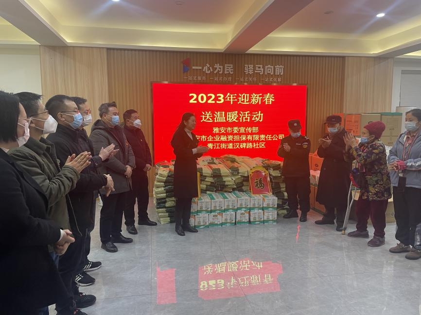 在新春佳節(jié)來臨之際,為讓困難群眾過上一個溫暖、祥和的春節(jié),1月13日,市擔(dān)保公司與市委宣傳部、漢碑路社區(qū)共同開展“迎新春送溫暖”活動,用愛心詮釋責(zé)任,用行動書寫擔(dān)當(dāng)。