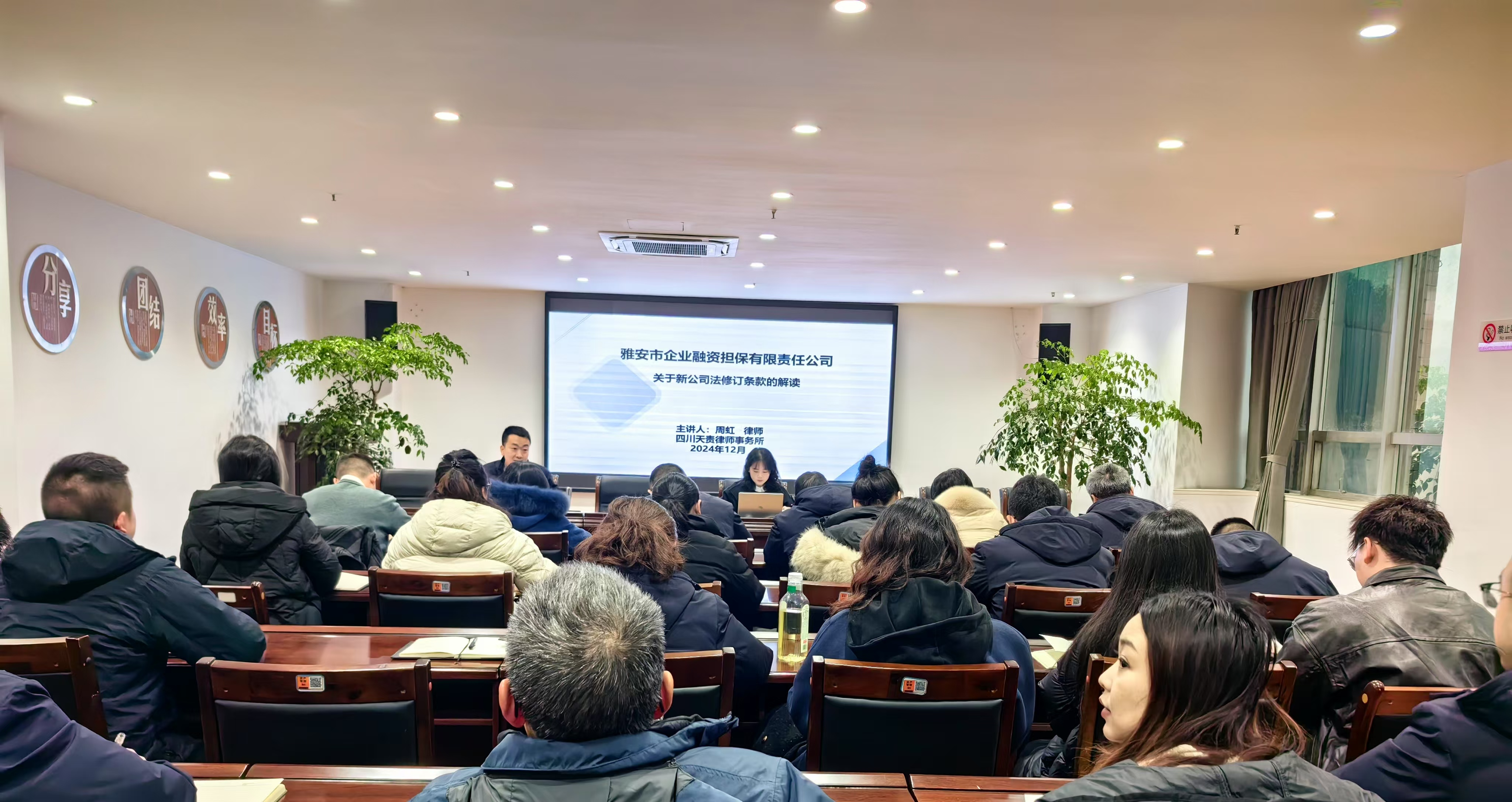 新修訂的《中華人民共和國公司法》已于2024年7月1日正式施行。為做好新舊法條的銜接工作,幫助公司精準把握新公司法的核心要義,提高公司在復雜市場環(huán)境中防范和化解法律風險能力,2024年12月13日上午,市擔保公司特邀請具備豐富法律實踐經驗的周虹律師,組織開展了新《公司法》專題學習培訓講座。