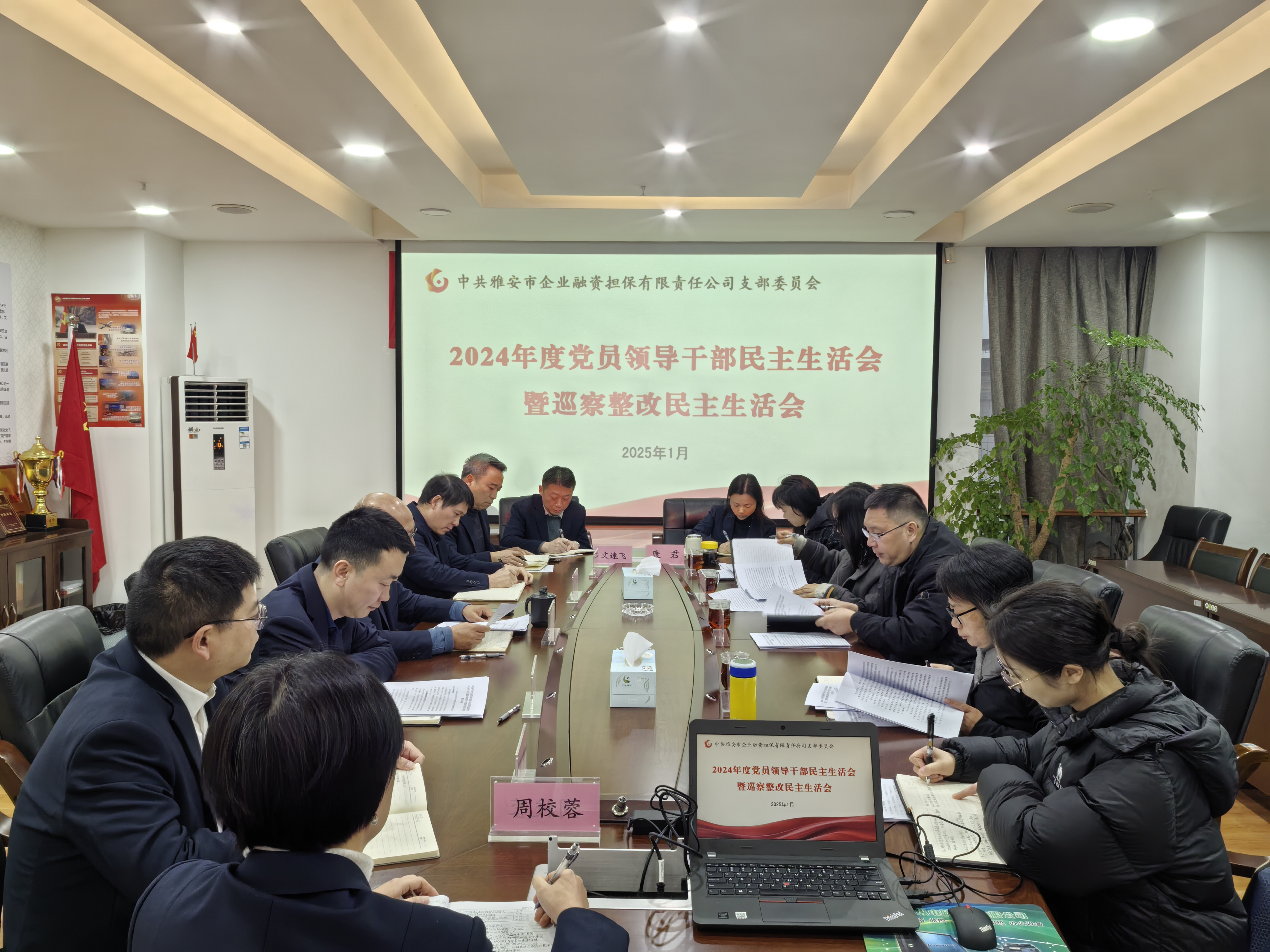 1月24日,市擔(dān)保公司黨支部召開(kāi)2024年度黨員領(lǐng)導(dǎo)干部民主生活會(huì)暨巡察整改民主生活會(huì)。市財(cái)政局黨組成員、副局長(zhǎng)張小春、駐市財(cái)政局紀(jì)檢監(jiān)察組組長(zhǎng)、市財(cái)政局黨組成員曾文碧以及市紀(jì)委監(jiān)委機(jī)關(guān)、市財(cái)政局相關(guān)同志到會(huì)指導(dǎo)并點(diǎn)評(píng)。會(huì)議由市擔(dān)保公司黨支部書(shū)記、董事長(zhǎng)尹福健主持。